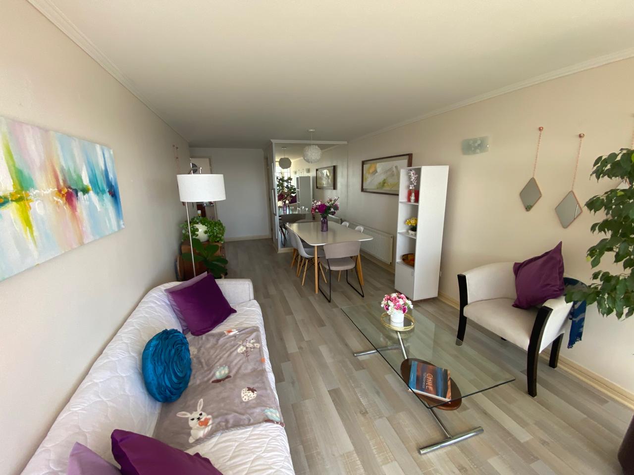 Amplia vista al litoral, recién remodelado, departamento de 3 Dormitorios con closet, 2 Baños (1 en Suite), orientación Oriente y Poniente, Living-comedor, amplia terraza cerrada, cocina amoblada y equipada, ventanas con termopanel, piso flotante, calefacción central por radiadores, Citofonía y alarma, además considera 1 Bodega y 1 Estacionamiento techado, con acceso controlado.